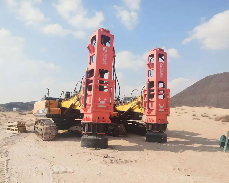 2024年底,上海港灣集團采購的6臺HC150挖掘機液壓夯分別在沙特阿拉伯利雅得 阿聯酋阿布扎比等沙漠地址環境下的地面改進工程中使用。